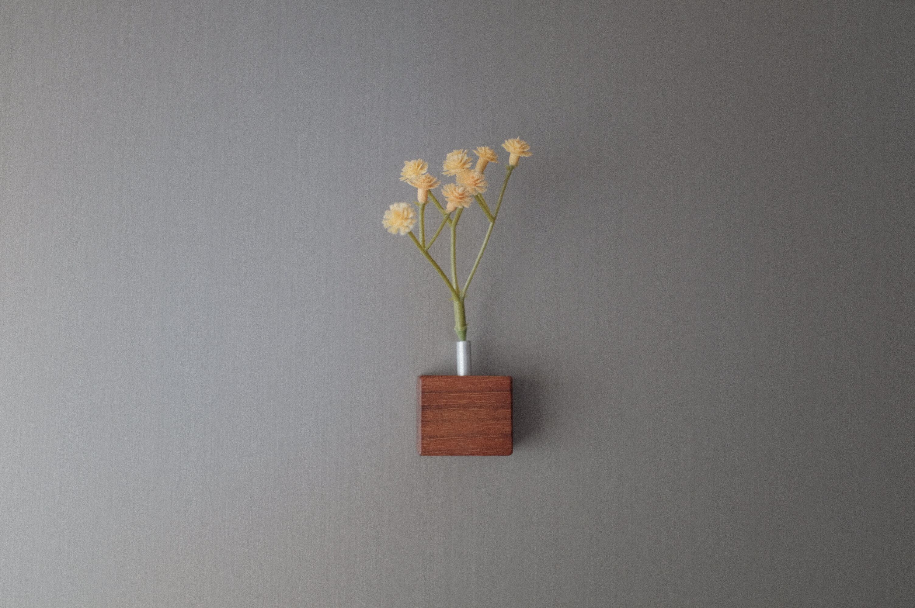 ウォールナット 筒部分/アルミ マグネット付き size 木部分 W32mm x D20mm x H27mm この一輪挿しは、手仕事で生産されています。どこか温かみのある質感、木とアルミの異なる魅力と経年変化もお楽しみ頂けます。日々の生活に美しさをプラスしてくれるアイテムです。 マグネットが取り付けされています。 ※穴径4mm ※この商品は1個単品の販売です。