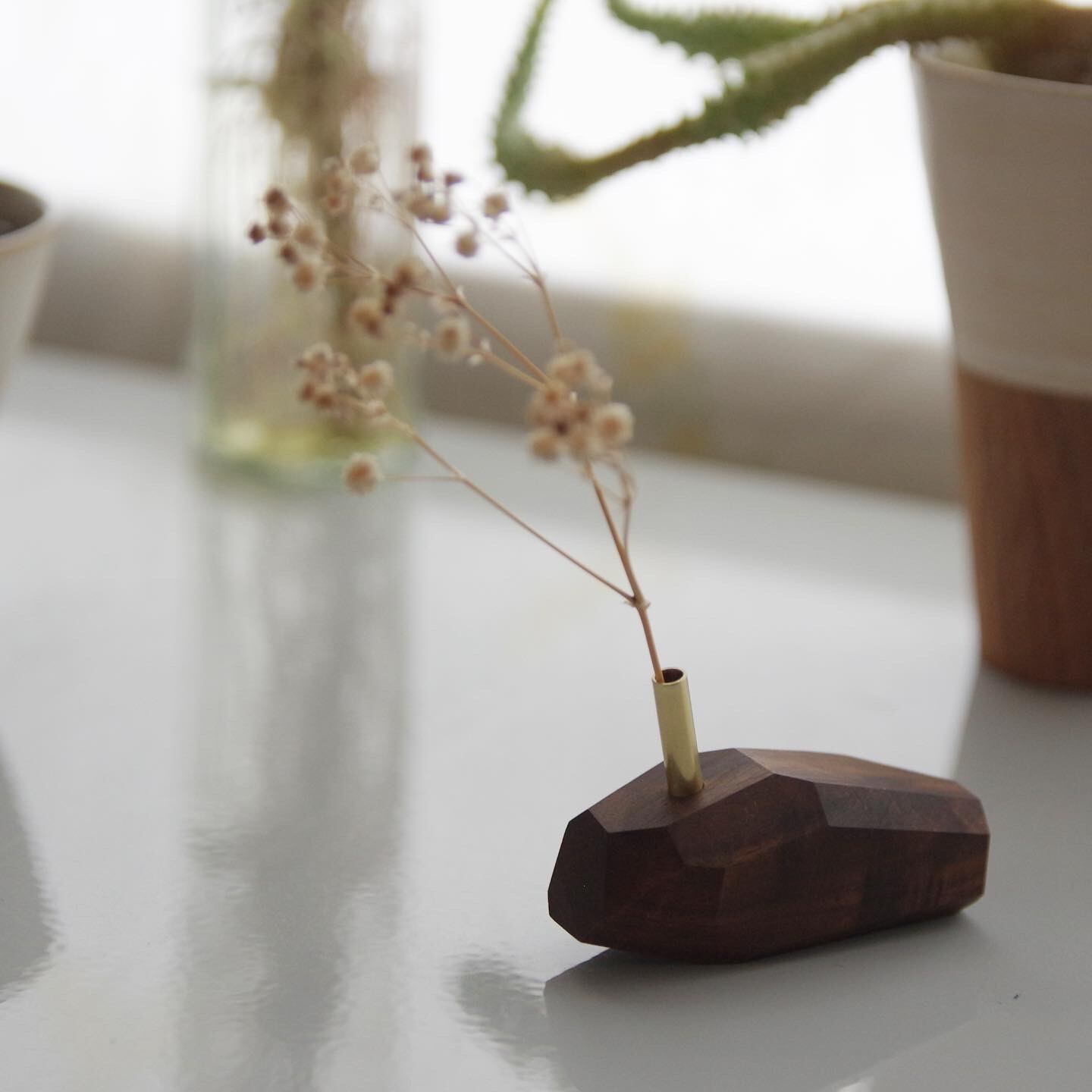 この一輪挿し(お香立て)は、手仕事で生産されています。どこか温かみのある質感、木と真鍮の異なる魅力と経年変化もお楽しみ頂けます。日々の生活に美しさをプラスしてくれるアイテムです。ぜひ、お手元にお届けください。